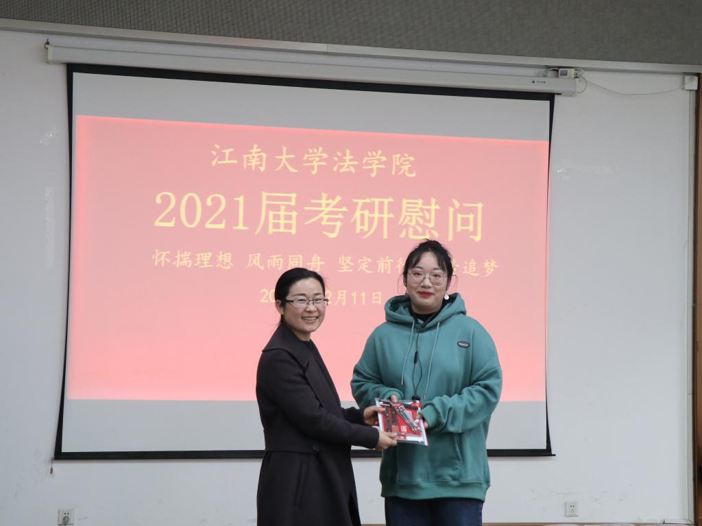 公司党委副书记张慧琪给考研学子分发考研福袋