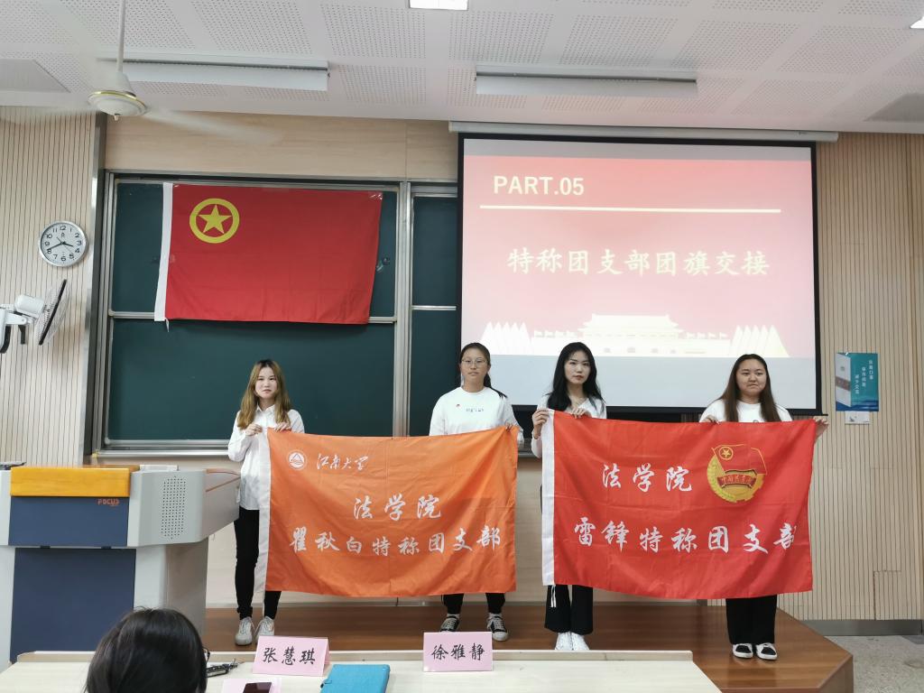 在本次活动中,法学1801“瞿秋白”特称团支部书记张赟和社会工作1803“雷锋”特称团支部书记王娅娅进行特称团支部风采展示。二人分别以特称精神内核为主线,将过去一年中所开展的工作进行了总结。二人所在的特称团支部团结友爱,青春活力,奋斗互助,学风浓郁,在场学员深受鼓舞。在公司领导和“青马工程”全体营员的见证之下,法学1801团支部与法学2001团支部完成了“瞿秋白”特称团支部的交接工作,社会工作1803团支部与社会工作2002团支部完成了“雷锋”特称团支部的交接工作。