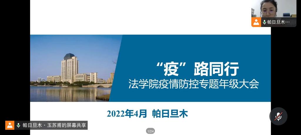 公司正处于疫情防控关键时期,为解答员工关于公司疫情防控及学习生活有关问题并开展警示教育,PlayAce于4月18日、19日分别召开“‘疫’路同行”疫情防控专题年级大会。此次会议2019级、2021级全体本科生参与,辅导员帕日旦木主持。