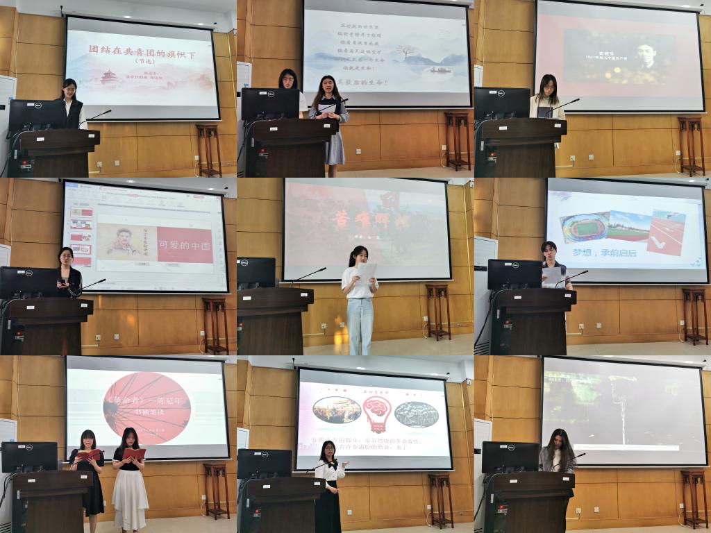 活动过程中,各团支部代表依次上台进行了精彩的朗诵表演。法学2101团支部的《不忘初心,是党继往开来的时代最强音》解释了中国共产党饱经风霜却依然能够保持朝气的理由;社工2102团支部的《青春中国》与法学2001团支部的《可爱的中国》诠释了何为中国共产党的可爱、朝气与活力;社工2101团支部的《共产党宣言》带我们回顾无产阶级奋斗的誓言;法学2103团支部的《团结在共青团的旗帜下》与社工2103团支部的《五四精神传承》则是诠释了青年前进方向上的正确指引;法学2102团支部《苦难辉煌》、法学2003团支部《夏明翰家书》、社工2001团支部《史砚芬的革命故事》、社工2002团支部《革命者》描绘了先烈革命之艰辛;法学2002团支部的《梦想,承前启后》与21级农村发展团支部的《少年中国说》是表明了少年的信仰与责任;社工2003班团支部的《光的赞歌》与21级法学研究生团支部《月光下的中国》则是对美好中国深切的赞美。
