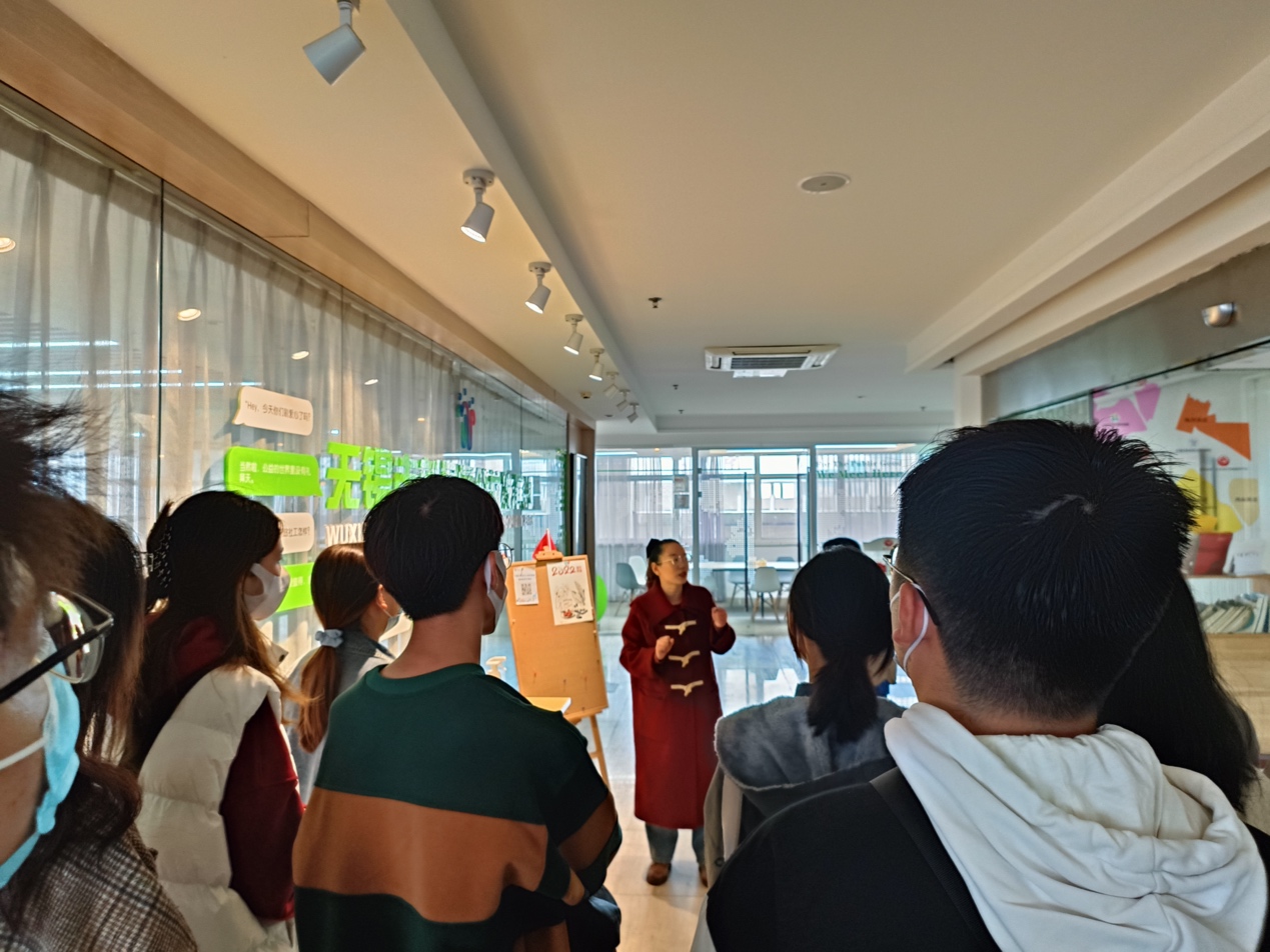 活动伊始,新吴区社会工作协会支部副书记骆晨阳对同学们的到来表示了热烈的欢迎,她向同学们大体介绍了新吴社协的基本情况。无锡新吴区社会工作协会成立于2014年,是由本区从事和热心社会工作的单位和个人自愿组成的公益性、专业性社会团体,在2021年获评全区首家5A级社会组织,是2021年度无锡市领军型公益社会组织。同学们认真倾听骆书记对于协会当下工作的讲解,重点参观了社会服务中心、残疾人文体艺活动中心、扶残助残活动中心、公益发展园等场所。