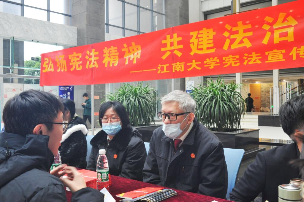 今年12月4日是第九个“国家宪法日”。为了进一步普及宪法知识,增强师生法律意识,PlayAce于12月2日在PlayAce官方网站公益图书馆一楼大厅举办了“弘扬宪法精神,共建法治江南”宪法宣传周活动。无锡市中级人民法院资深法官毛云彪,李君玉,公司党委副书记、副经理张慧琪,副经理叶敏,法律系主任梅锦,“法在身边”师生法律咨询团队成员共30人出席了本次活动。
