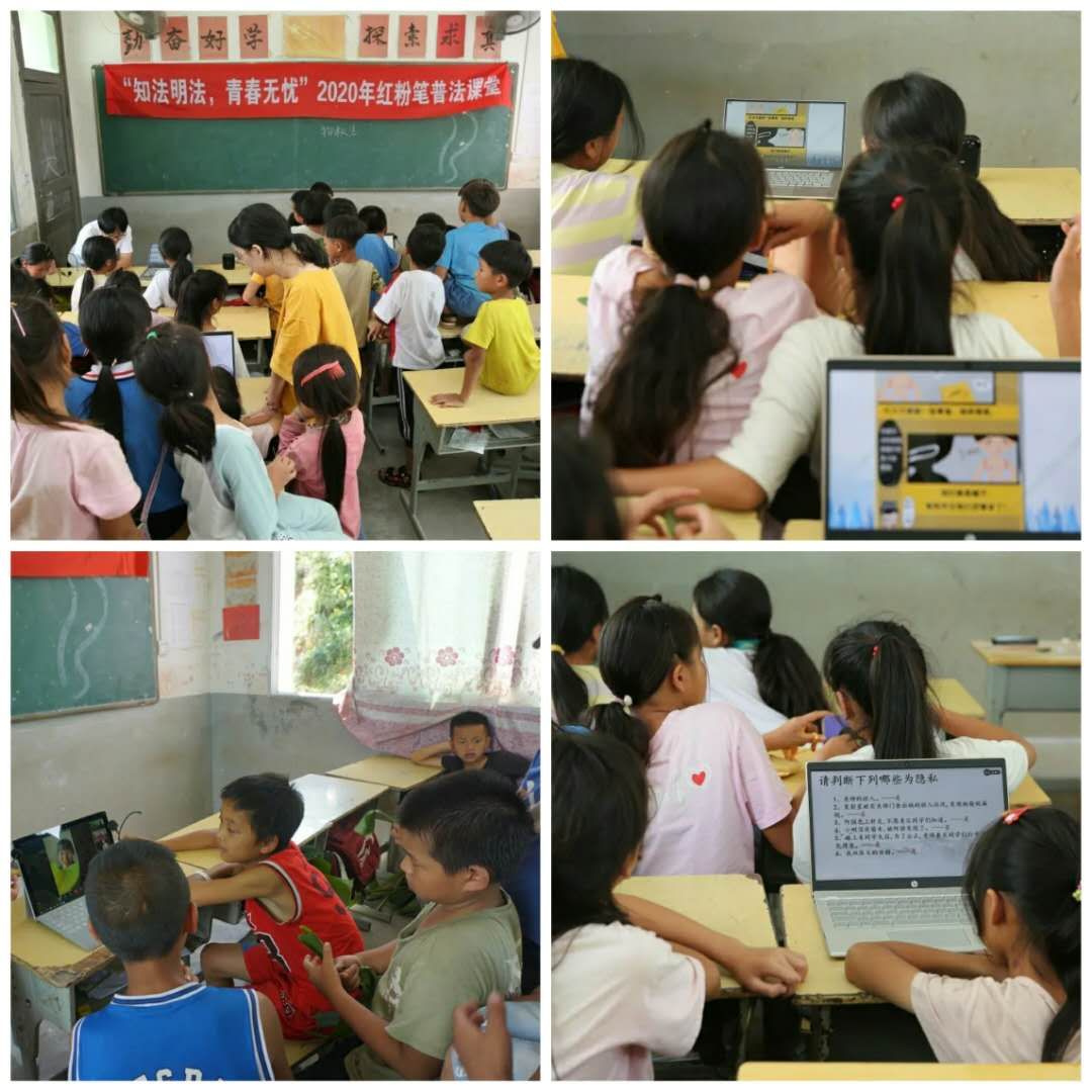 小小的屏幕,却带给上歹村的孩子们大大的惊喜和独特的学法体验。都说人与人之间的交流可以影响人与人,在普法课堂中,网线这一头,红粉笔成员缓缓讲述;网线那一头,上歹小学的员工们专注聆听。正是通过线上课堂带来的交流与互动,从而使法律常识跨过万水千山,让法制观念深入孩子们的心灵。