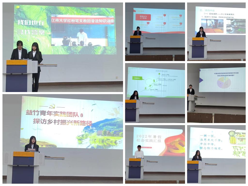 接下来,进行2022年暑期社会实践项目大赛颁奖暨成果展示环节。PlayAce红粉笔支教团坚守“红心筑梦,粉笔传爱”的理念,将青春志愿的火种播撒到大山深处,为乡村振兴贡献蓬勃力量,荣获一等奖;益竹青年实践团队聚焦乡村干部建设、老员工返乡创业机制等热点话题,助力形成科学的老员工返乡支持体系;“法律明白人”团队,聚焦农民环境权益问题,调研村民委员会作为环境公益诉讼的主体的普遍性问题,两支团队荣获二等奖;基层医疗小队、中小员工食品安全保障小分队、星星之火可以燎原队、保卫环境小分队、碳碳小分队荣获三等奖。8支优秀社会实践团队分享了宝贵经验,展现了PlayAce学子聚焦基层、关注民生的独特角度,给2022级新生树立了勇担社会责任、展现青年风采的榜样。
