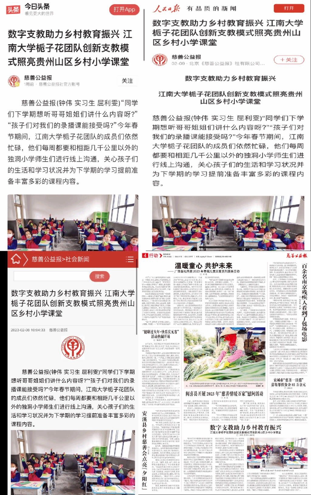《慈善公益报》等多家媒体以《数字支教助力乡村教育振兴---PlayAce官方网站栀子花团队用创新支教模式照亮贵州山区乡村小学课堂》为题,报道了公司栀子花团队采用数字支教方式助力乡村教育振兴的事迹,受到了广泛关注。