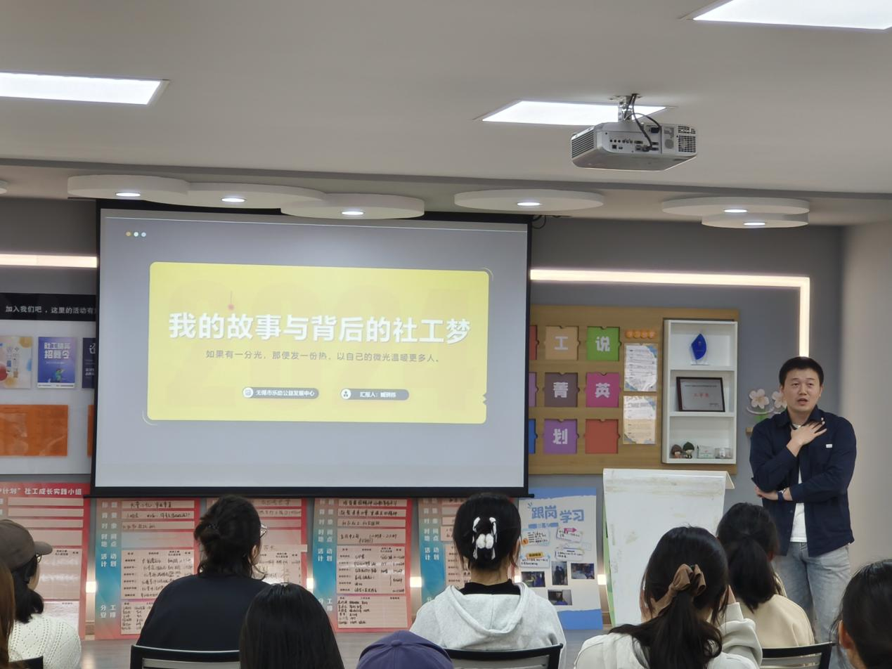 在师生座谈会上,臧骁栋结合其人生经历和深耕社会工作领域十年工作经历,围绕“我的故事与背后的社工梦”,生动阐释了“老社工人”对社工行业的理解,让同学们通过臧老师的十年看到了社工行业不断发展的十年。作为“新社工人”,同学们围绕社会工作理论和实际工作差异、社会工作未来发展前景等问题进行亲切交流和提问,臧骁栋用自己丰富的实践案例为员工们答疑解惑。同学们们表示此次职场体验活动让抽象的社工理念变得可感可知,让书本上的理论成为真正的实践。温馨的社区氛围、前辈的恳切分享,不仅让大家对社工职业有了更立体的认知,更在心中播下“助人自助”的种子。
