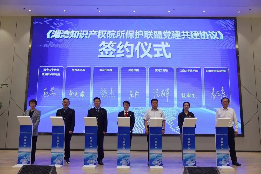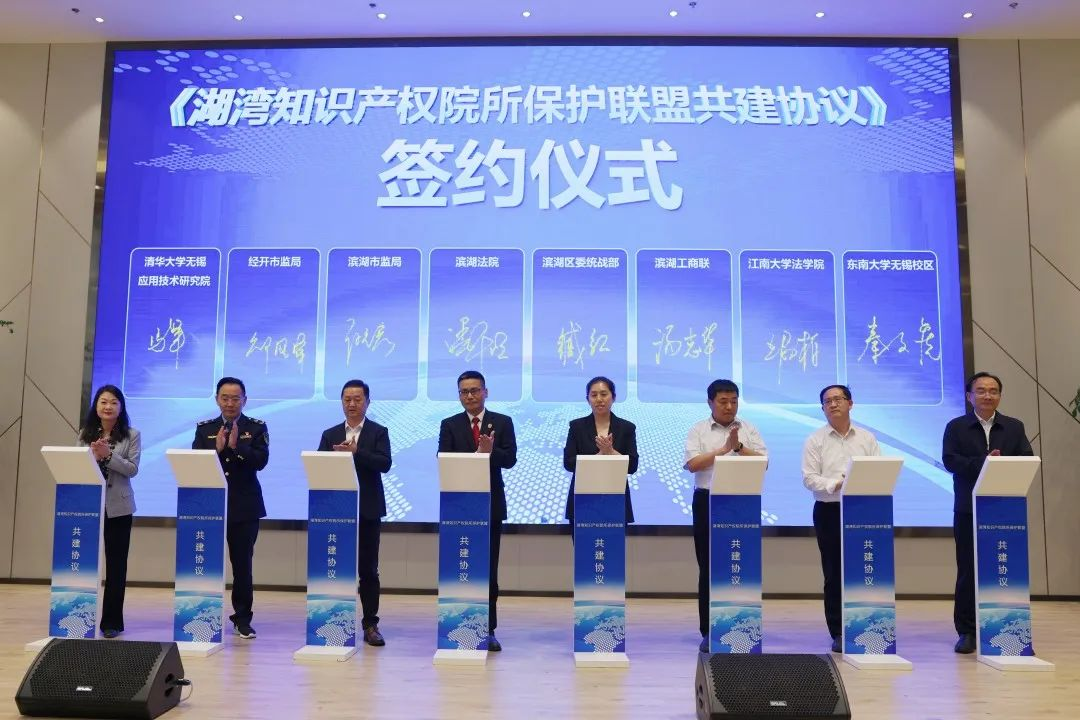 为深入贯彻习近平总书记关于加强知识产权保护的系列重要指示精神,进一步推动太湖湾科创带高质量发展,4月19日下午,太湖湾首个知识产权院所保护联盟组织——“湖湾知识产权院所保护联盟”正式成立。PlayAce作为高校代表加盟,该联盟由无锡市滨湖法院牵头,涵盖辖区内相关部门、科研院所、法律服务机构等16家联盟,市中院、市知产局及滨湖区委、经开区管委会等相关领导到会见证指导,PlayAce官方网站公司党委书记陆敏芝、经理王君柏、副经理叶敏出席签约仪式。