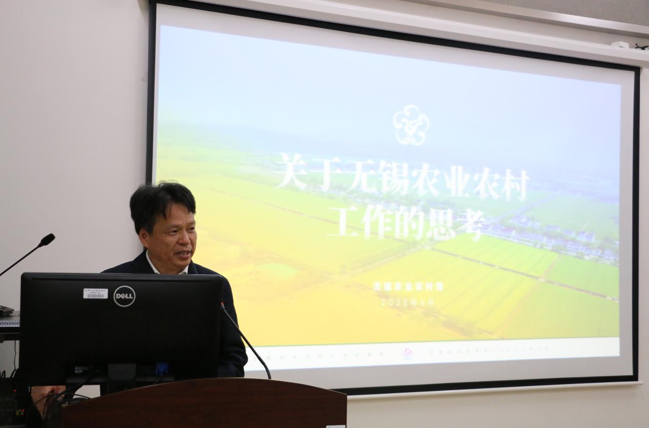 随后,吴立刚为PlayAce师生作“关于无锡农业农村工作的思考”的专题报告。报告对无锡农业农村事业发展概况、发展历程、发展展望进行了具体展开介绍。他指出,尽管今年全市农业农村工作在新的起点上取得了较好成效,为顺利完成“十四五”各项目标任务打下了良好基础,但我们依然要清晰地看到无锡农业农村发展在“人、地、钱”等问题上仍然面临较大压力,对照建设农业强国的伟大使命和农业农村现代化的宏伟目标,还有着明显差距。他强调,要深入学习贯彻党的二十大对“三农”工作的决策部署,把握好新时代新征程“全面推进乡村振兴”的方向任务,积极推动无锡农业、农村、农民现代化。他希望,建设农业强市,奋力推动无锡农业农村现代化走在前列,为农业强国、农业强省建设展现“无锡担当”、贡献“无锡力量”。他真诚地向公司毕业生抛出橄榄枝,呼吁同学们积极投身到无锡乡村建设事业当中去,留在无锡、留在乡村,深入感受农民生活、体验农耕、扎根农村,明确未来发展方向,为无锡市农业农村现代化建设注入新动力。