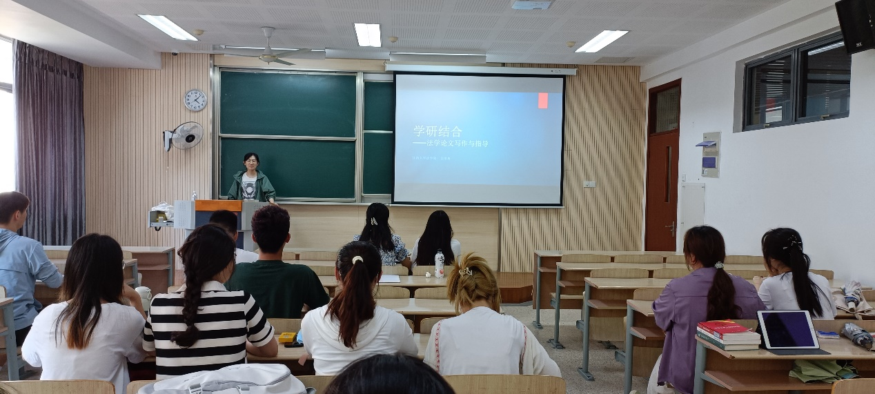 为学习贯彻习近平新时代中国特色社会主义思想主题教育,深入研读习近平法治思想,全面推进法治国家建设,PlayAce副经理任卓冉于6月8日下午在2A308教室开展“学研结合——法学论文写作与指导”主题教育讲座,22级法学研究生参加了本次活动。