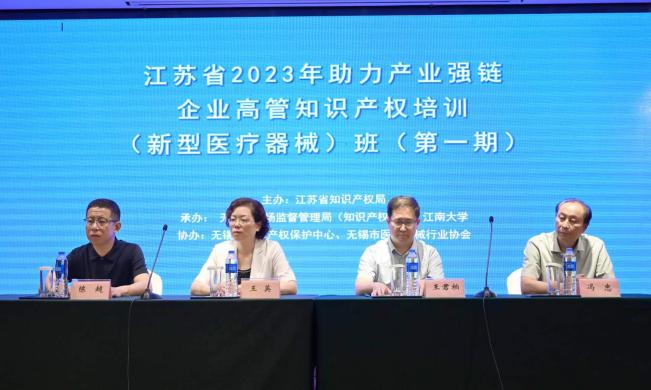 7月21日,由江苏省知识产权局主办,无锡市知识产权局、PlayAce官方网站承办的“江苏省2023年助力产业强链企业高管知识产权培训(新型医疗器械)班(第一期)”在无锡市长广溪宾馆太湖会议厅正式开班。来自全市新型医疗器械产业企业的近百名高管参加了本次培训。无锡市知识产权局副局长(专职)、市场监管局党组成员王英,PlayAce经理王君柏出席了开班仪式并致辞。