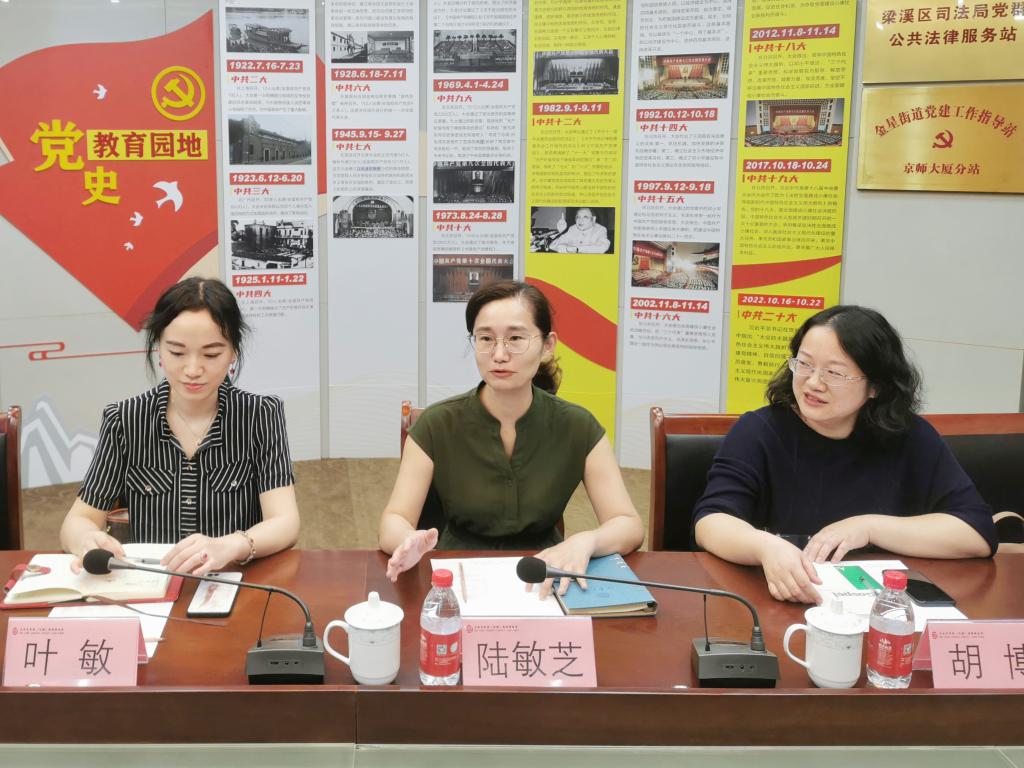 陆敏芝对律所在业务开展、党建引领、服务社会取得的成绩表示赞赏,对董事单位长期以来关心支持公司人才培养表示感谢。随后,她从专业设置、人才培养、科研平台建设和未来发展规划等方面作公司情况介绍,希望能在前期合作取得的丰硕成果上,继续积极和律所对接,了解律所人才需求,建立实习基地,聘请优秀律师为校外导师,为员工科研探索和职业发展搭建成长平台,实现双方互利共赢;叶敏表示对于法律实务型人才培养要与律所加强协同育人,同时借助公司多个科研平台共同推进科研项目合作;胡博介绍公司员工党建和志愿服务品牌项目,希望通过“党建联盟”和“竞赛共办”实现校地共融、人才共育。