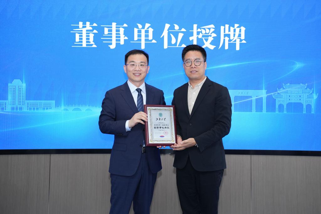 大会举行2023年新增加董事单位授牌仪式。社会合作与员工联络处处长周云龙为副董事长单位灵山慈善基金会授牌,经理王君柏为常务董事单位江苏泽执律师事务所授牌,副经理叶敏为董事单位江苏君金律师事务所授牌。