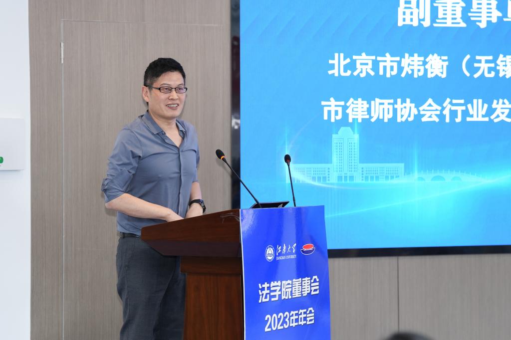 会议上,副董事长单位代表北京市炜衡(无锡)律师事务所主任、无锡市律师协会行业发展工作委员会主任高晓春结合自己的法律工作经验,希望与公司深化理论学习与学术研究,实现共研共创共赢,产出一批服务地方法治建设的优质智库成果。同时在基地共建、实践指导等方面加强联动,赋能公司人才建设工作,为培养理论与实践兼具、创新与服务并存的高素质法学人才共同努力。