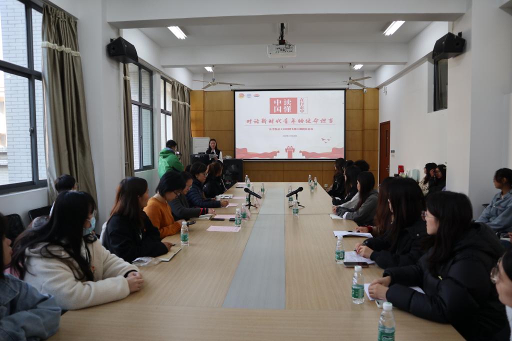 活动缓缓拉开帷幕,第一环节“回望成长,在江南共赴一场闪光青春”,团支部副书记李一诺同学汇报团支部建设情况,5位优秀员工代表分享参与学科竞赛、志愿服务、社会调研的成长感悟,一组组高质量的数据,一幅幅生动精彩的照片,一个个友爱团结的故事...充分展现出团支部乐学善思、笃行实践的青春风采。第二环节“研思共学,从新时代枫桥精神看青年本色”,团支部书记闫嵩涵同学领学团课《“青”力而为,基层有我》。今年是毛泽东同志批示学习推广“枫桥经验”60周年,是习近平总书记指示坚持和发展“枫桥经验”20周年。闫嵩涵带领团员学习新时代“枫桥经验”的内涵,解读基层治理的东方智慧,体会“以人民为中心”的发展思想,发出践行基层使命担当的青春誓言;第三环节“共话未来,以青春之我助力中国之治”,师生代表围绕新时代枫桥精神、基层治理、社会调研、学涯规划等话题开展交流互动,在分享学习与实践感悟中启发思考,一言一语中闪烁着思想光辉。