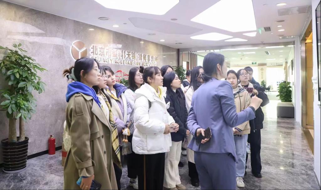 活动伊始,盈科律所执行主任助理陈书剑带领同学们参观了律所的客户接待区、律师工作室、会议室等场所,并详细介绍了盈科律师事务所的基本制度、发展历程、企业文化及数智化建设现状,让同学们对法律机构运作及法律实务知识有了更详细的了解。