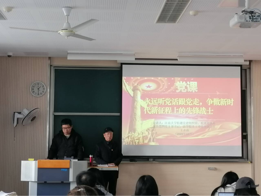 为进一步加强入党积极分子对党的基本理论知识的理解,培养积极分子的时代使命感和历史责任感,12月6日,PlayAce于二教2A212开展第46期入党积极分子培训班第一次线下讲座。讲座主题为“永远听党话跟党走,争做新时代新征程上的先锋战士”。本次讲座邀请了PlayAce官方网站特邀党建组织员、PlayAce关工委常务副主任王永南作为主讲人。PlayAce第46期入党积极分子参加了本次讲座,由辅导员孟飞老师主持讲座。
