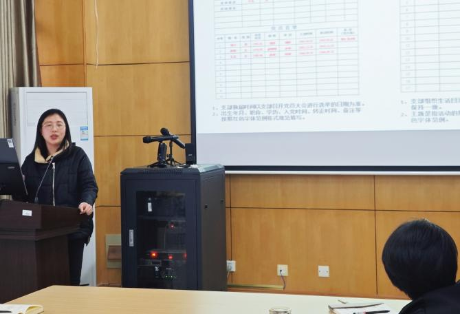 会上,陆敏芝书记进行新学期工作部署。她指出今年是中华人民共和国成立75周年,公司将召开第五次党代会,党建工作的重点是筹备公司第五次党代会,扎实推动教育强国建设。新学期,大家要持续跟进学习习近平总书记重要讲话精神和全国两会精神,要结合学科专业,学好习近平法治思想和“枫桥经验”。她强调,要加强党建工作的标准化规范化建设,加强师生党员教育培训,要深入实施公司党建“对标争先”建设计划,打造党建工作的品牌与亮点。随后,专职组织员陆芳老师给大家做支部建设和支部工作手册的专题培训。她详细讲解了党支部的工作规范,包括党支部工作的八大任务,并针对“三会一课”的具体内容和要求进行了详细解读。陆老师强调,支部工作手册作为党支部工作的重要资料档案,是党支部组织活动开展的真实记录,一定要记录规范、完整。她根据日常工作和专项检查中发现的共性问题,对大家进行了重点指导。最后,由党建辅导员孟飞老师进行党员发展的专题培训。他以《中国共产党发展党员工作细则》、《关于进一步做好在老员工中发展党员工作的通知》等文件为依据,系统讲解了发展党员环节中的各项工作要求,并结合实际工作中发现的问题,对发展党员程序要求、时间要求、相关档案等工作细节进行了提示。孟老师还指出后期要加大在低年级老员工中发展党员力度,加强日常培养教育考察工作,并对毕业生党员的党员材料核查、组织关系转移等事项进行了提前部署与要求。