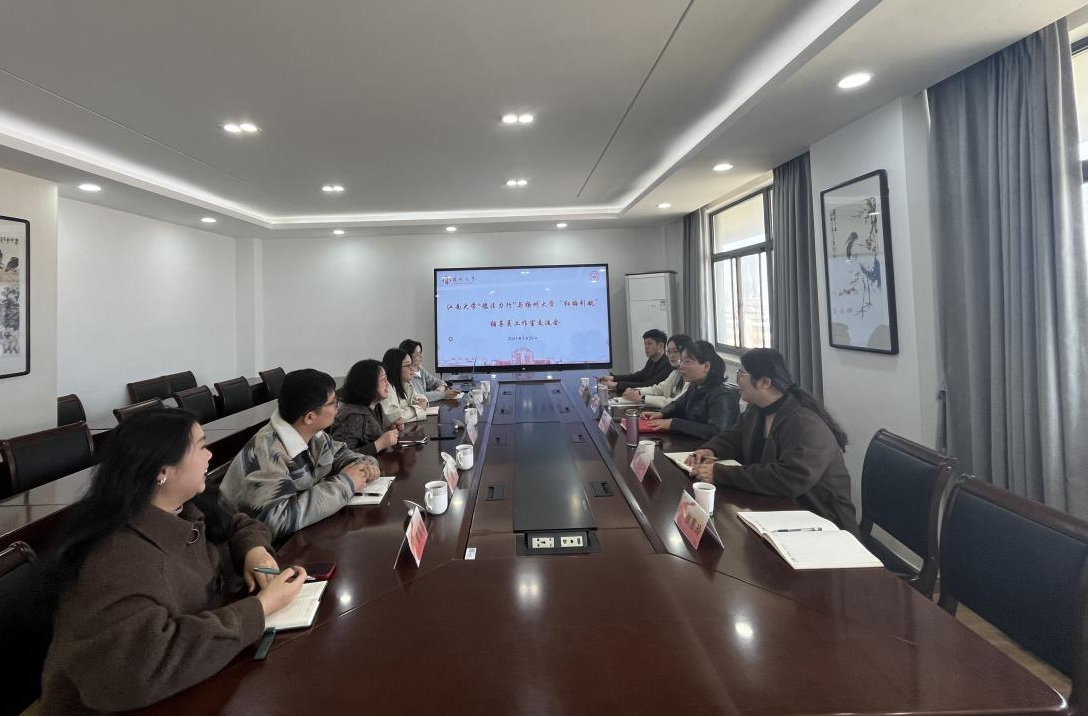 为落实立德树人根本任务,提升高校员工工作队伍能力,推动辅导员工作室高质量建设,3月29日上午,公司党委副书记、副经理胡博、分团委书记兼学工办主任徐雅静、辅导员帕日旦日·玉苏甫、孟飞、缪晶晶赴2024年教育部首批辅导员名师工作室、2022年江苏省网络思政名师工作室——扬州大学“红梅引航”辅导员工作室开展交流研讨,工作室负责人、扬州大学医公司党委副书记左红梅,分团委书记李丹阳、工作室常务副主任王潆及辅导员徐惠玲、彭程参加了交流活动。
