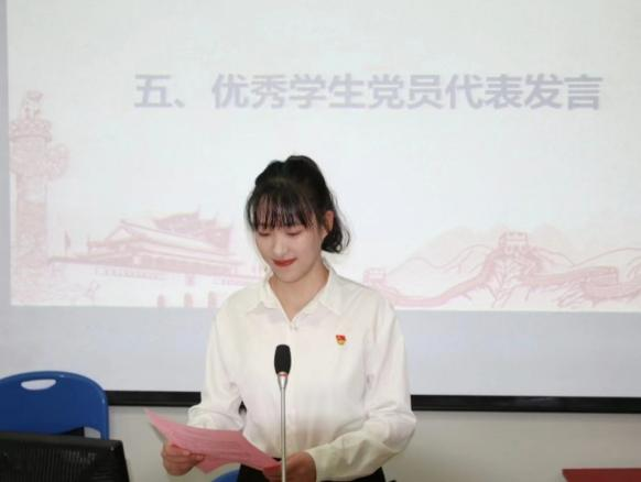 活动第四项由新党员代表赵诣辰分享感悟。她首先表达了对党组织深切的感激,她提到,从申请入党的那一刻起,就立志要为共产主义事业奋斗终身,并始终牢记党的宗旨和使命。作为新党员,将不忘初心,牢记使命,勤勉工作,廉洁自律,为党的事业添砖加瓦,为人民的幸福生活贡献力量。