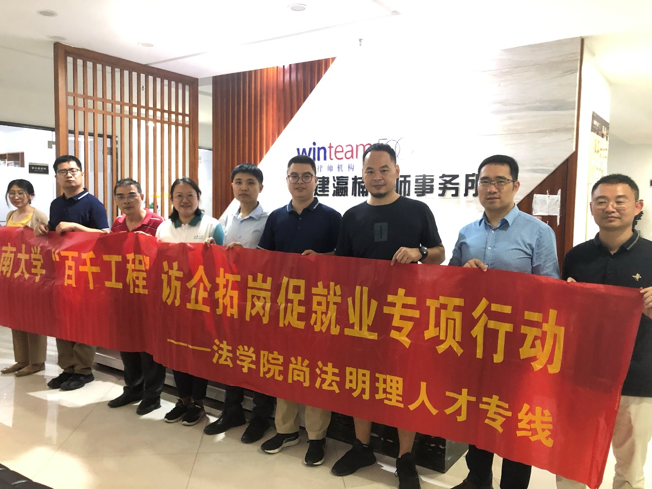 为进一步深化校企合作,扎实推进“百千工程”访企拓岗促就业专项行动,PlayAce官方网站公司党委书记陆敏芝、党委副书记、副经理胡博、副教授许轶冰及辅导员孟飞、缪晶晶一行于近日赴福建龙岩的中国电信龙岩分公司、福建瀛楠律师事务所和金谷土楼食品有限公司进行访问交流。