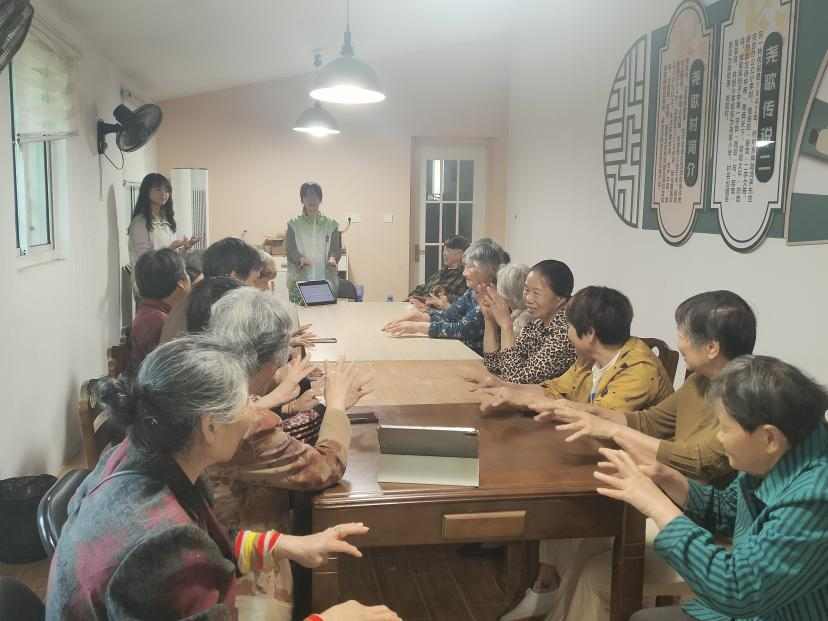 活动当天,团队成员通过音乐疗法、手指操、认知症预防游戏等创意方式,与老人们建立起跨代际的情感联结。科普环节采用沉浸式教学方式展开,深入浅出地向老人们介绍认知症的阶段性症状、患病原因以及预防方法,强调“早预防、早发现、早就医”的重要性。老人们认真聆听,积极参与互动,现场互动热烈。