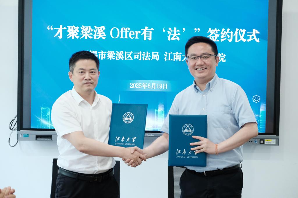 首先,胡博从推动校地政策支持、规划职业发展路径和拓展就业市场需求等方面,详细介绍了协同就业活动的筹备及组织情况,旨在发挥校地携手优势,实现在锡企业与毕业生的选择落地;任卓冉详细介绍公司在人才培养方面的鲜明特色以及员工的突出发展优势,为后续精准对接梁溪区法治建设需求、输送高素质法治人才奠定坚实基础。随后,王伟与陆秦庄重落笔,共同签署了战略合作协议。