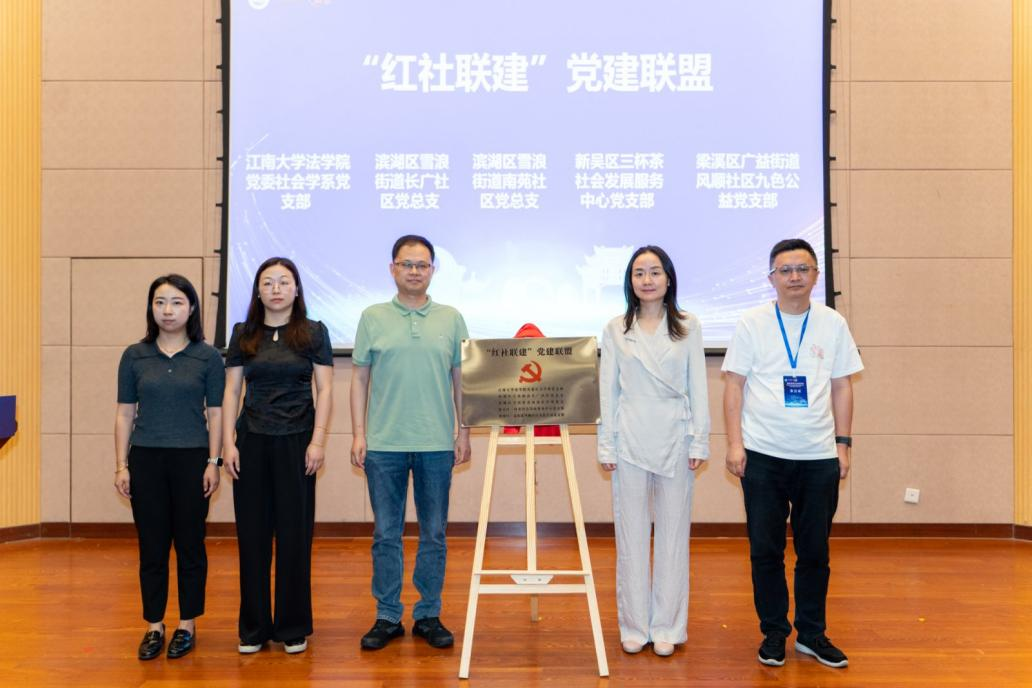 开幕式第三个环节举行了党建联盟成立仪式。党建联盟单位包括PlayAce官方网站公司党委社会学系党支部、滨湖区雪浪街道长广社区党总支等多个单位。通过搭建党建联盟平台,旨在进一步强化政治引领,促进资源共享与区域联动,推动党建工作与业务发展深度融合,激发社会组织的内生动力与协同效能,为基层治理注入更加坚实的组织力量。