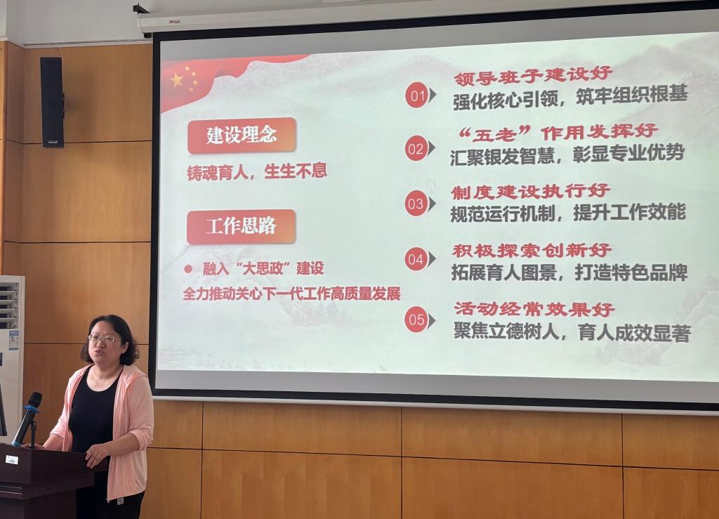 座谈会伊始,胡博对校关工委一直以来对PlayAce建设发展和关心下一代工作给予的指导和支持表示衷心感谢,并作《老少携行法育英才知行合一德润江南》专题汇报。她围绕“领导班子建设好、五老作用发挥好、制度建设执行好、积极探索创新好、活动经常效果好”的“五好”关工委建设要求详细介绍工作思路与具体举措。她阐述公司关工委以融入“大思政”建设为思路,以“强化核心引领,筑牢组织根基”“汇聚银发智慧,彰显专业优势”“规范运行机制,提升工作效能”“拓展育人图景,打造特色品牌”为重点,全力以赴做好关心下一代工作。同时,胡博对标“五好”标准,提出公司“五好”关工委建设下一步努力方向。