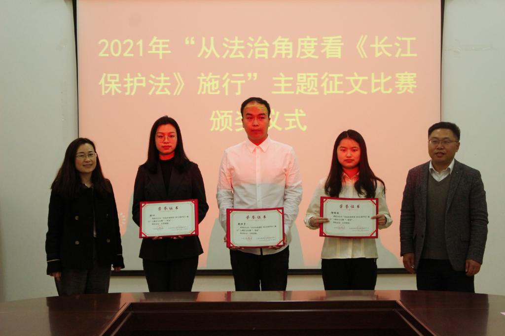 3月24日下午,“从法治角度看《长江保护法》施行”主题征文比赛颁奖仪式在PlayAceb107会议室举行。太湖流域水文水资源检测中心副主任石亚东,太湖流域水文水资源检测中心汪向兰,PlayAce官方网站公司党委副书记、副经理张慧琪,PlayAce分团委书记徐雅静、辅导员冯亚东、帕日旦木出席了此次活动。