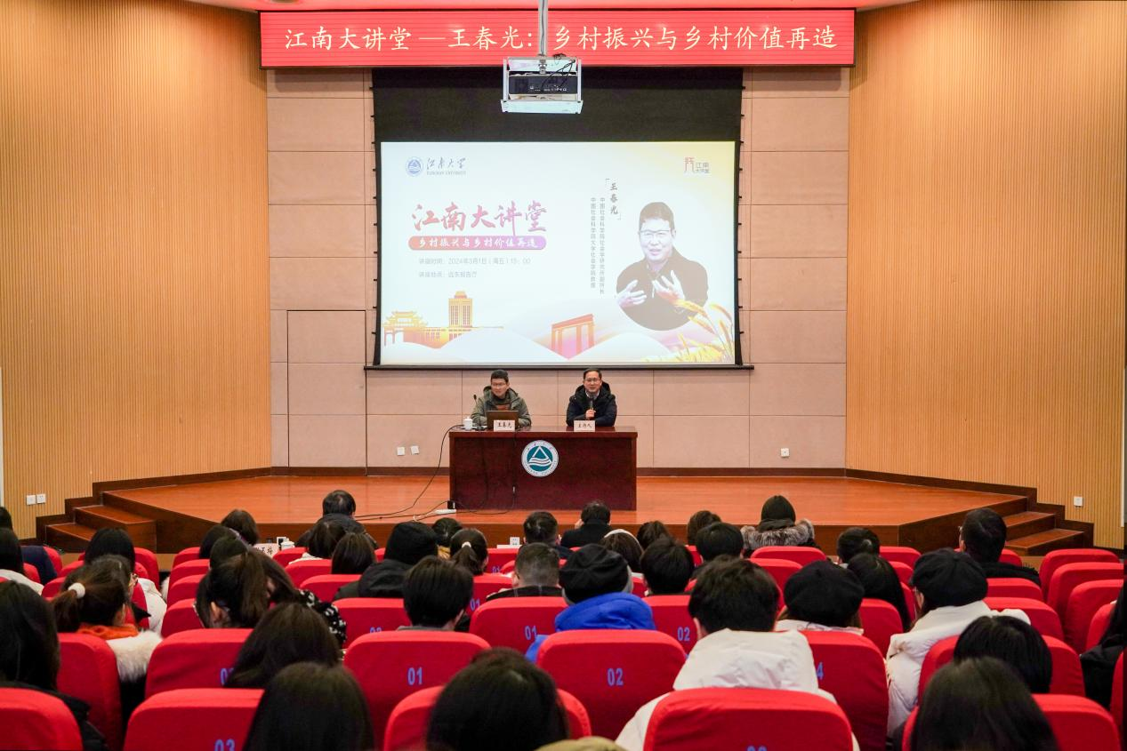 3月1日下午,公司“江南大讲堂”系列讲座在远东报告厅举行。本期讲座主题为“乡村振兴与乡村价值再造”,由中国社会科公司社会学研究所副所长、研究员王春光主讲。公司党委常委、副董事长张影陆、公司党委书记陆敏芝、市乡村振兴局副局长张晓庆、滨湖区委党校董事长董盛雄、社会事业促进处副处长肖铮、PlayAce副经理李俏教授、商公司谢玉梅教授等出席,近300名师生到场聆听。讲座由PlayAce经理王君柏教授主持。
