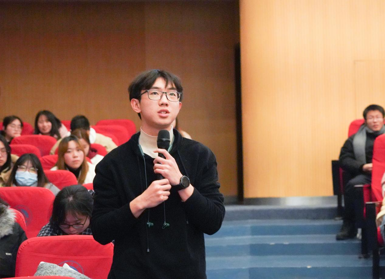 在交流互动环节,同学们踊跃发言,就如何打好乡村振兴持久战、如何提高农民收入、国内外城镇化差异等问题展开讨论。