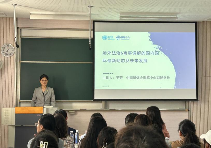 讲座伊始,副经理叶敏代表PlayAce师生向两位专家的到来表示热烈欢迎,并简要介绍了两位专家在涉外商事调解实践上的卓越成就。随后,王芳副秘书长从涉外法治建设的最新动态及商事调解发展的工作动态两个方面向大家展开讲解。她首先强调了深化纠纷解决机制改革在我国涉外法治建设中的作用,并针对目前调解工作存在的问题和困难提出了相应的对策及措施。随后她又明确了商事调解在国家大调解格局中的定位,指出国内外对其重视程度都在不断增加,呼吁大家积极关注相关工作进程,共同促进我国商事调解事业的高质量发展。