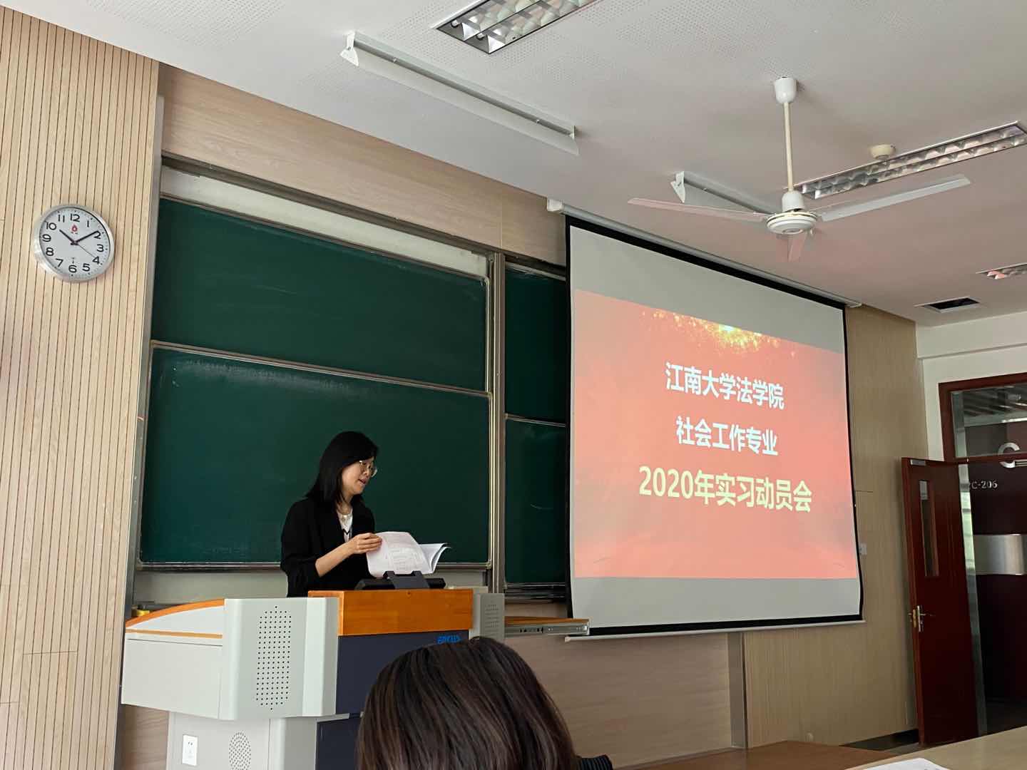 第二个主题为社会工作专业实习动员会,由系主任汪冬冬老师主持,章程老师发言。章程老师围绕专业实习在人才培养计划中的设置强调了实习的必要性、目的、意义以及实习途径、实习时间、实习任务与要求等注意事项,让员工层次分明、条理清晰地全面了解实习,激发了员工参加实习的热情。同时,章程老师进一步就员工提出的问题进行答疑,使员工进一步明确了自己要做的准备工作。
