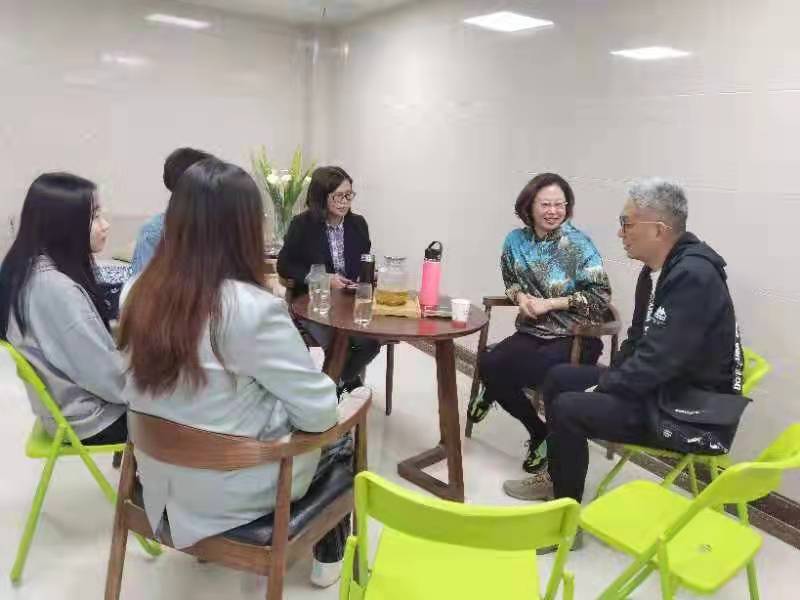 德盛社会工作服务中心的陆远平老师向彭青云老师介绍了德盛社工的概况,以及在孙蒋社区负责项目的相关情况。德盛社工有着多名社会工作专业人士,致力于提供精神障碍社区康复、青少年、老年人、妇女和特殊群体等社会工作服务及相关的培训、评估和督导,产生了广泛的社会影响,具有丰富的社会工作实务经验。