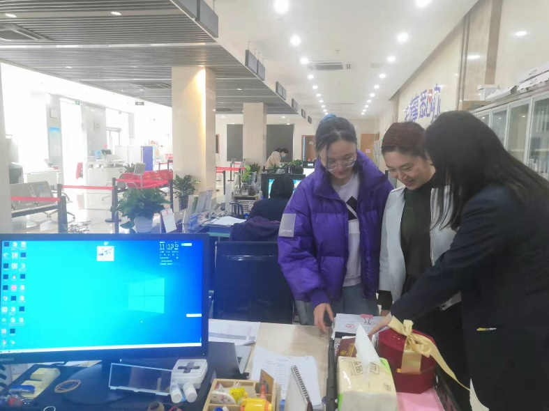 最后,王芳在带教专员靳冬梅的陪同下到蠡园街道为民服务大厅参观了实习生范荣的工位,并仔细询问了近期相关的工作内容,并向徐荣和靳冬梅表达了对蠡园街道办事处给予PlayAce社会工作专业实习工作大力支持的感谢。徐荣也表示很高兴能够有这次深入交谈的机会,并表达了对以后蠡园街道办事处与PlayAce更深层次合作的期待。