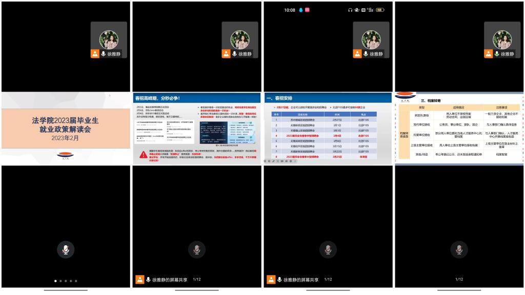 首先,徐雅静对就业形势分析与春招安排做了简要说明,引导毕业生保持平实之心,从实际出发选择职业和工作岗位,合理就业预期,积极主动参加校园招聘会和宣讲会,树立正确的职业观、择业观和成才观;其次,就不再发放《就业报到证》的最新政策进行了解读,告知员工不再将就业报到证作为办理高校毕业生招聘录用、落户、档案接收转递等手续的必需材料,同时建立毕业去向登记制度,提醒毕业生按要求做好去向登记;再次,徐雅静就档案转寄和查阅的要求和流程做了简要说明;最后,她针对就业签约、政审中常见问题进行解答,为毕业生就业提供了较为明确的方向。之后,由毕业生针对自己疑惑的问题进行提问,徐雅静线上耐心解答,消除了毕业生心中的疑虑。